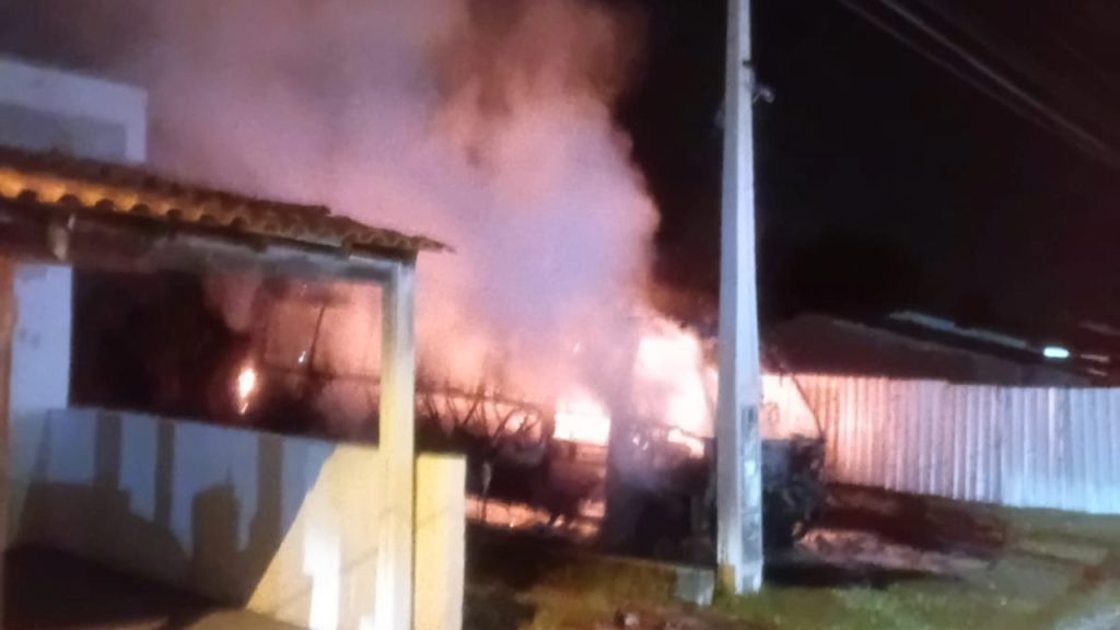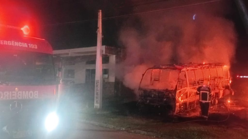 Um micro-ônibus foi completamente destruído por um incêndio na madrugada deste domingo (29), no bairro Vila Santo Antônio, em Imbituba, no Sul de Santa Catarina.